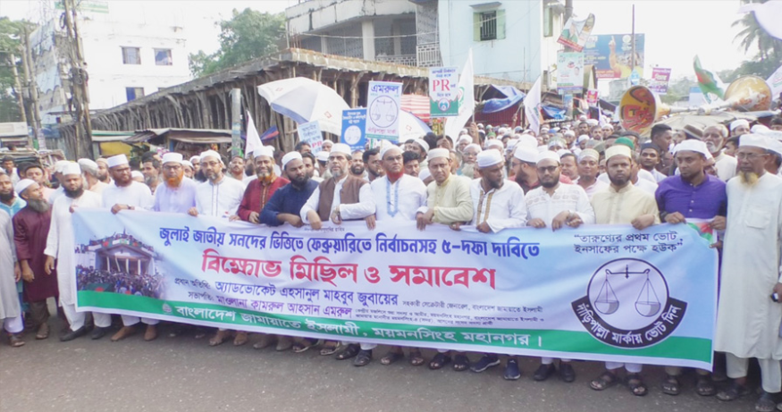 ৫ দফা দাবিতে ময়মনসিংহে জামায়াতের বিক্ষোভ